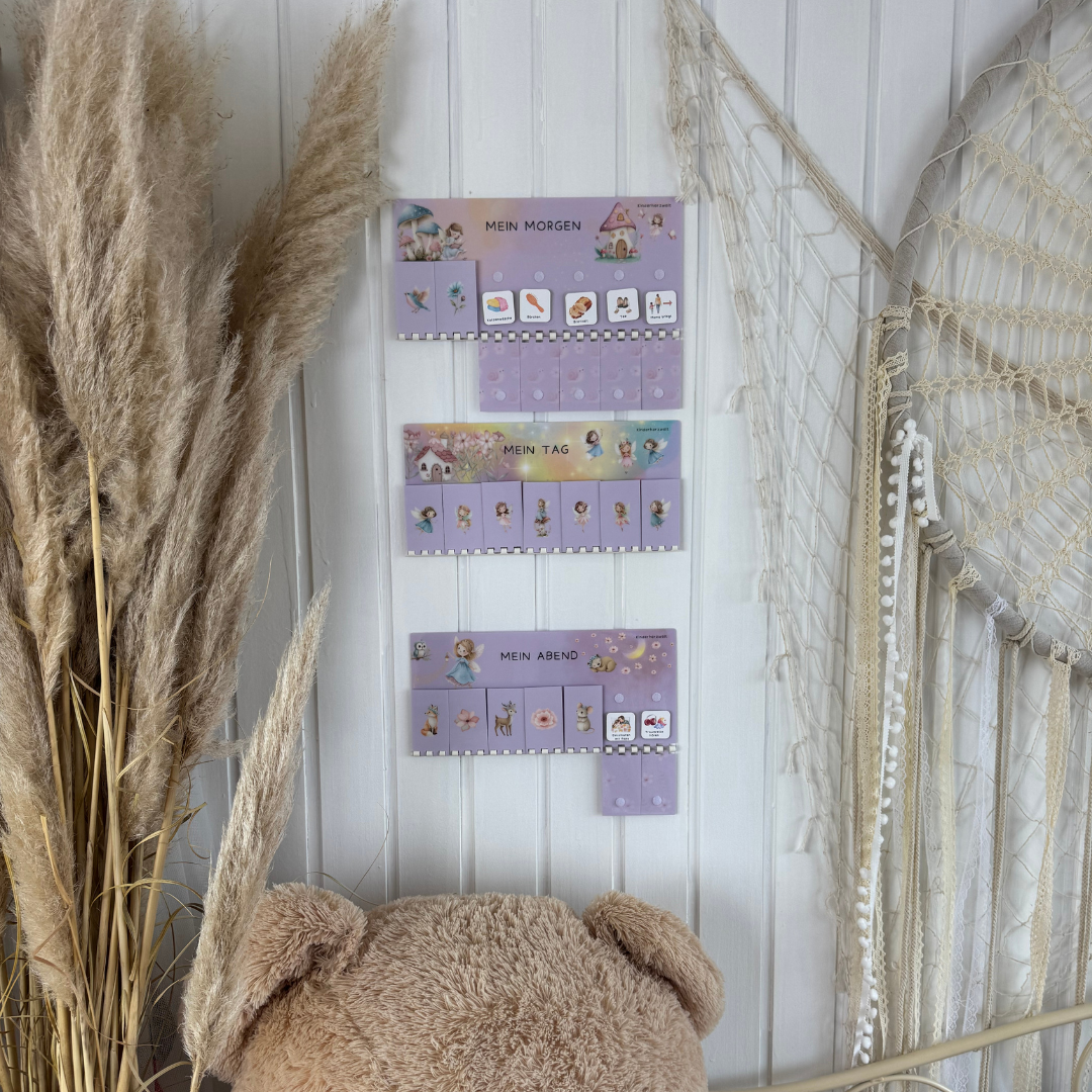 Ob Aufstehen, Anziehen, Spielen oder Schlafengehen, mit klaren Symbolen und sanften Farben werden Routinen zu vertrauten Momenten, die Ruhe und Struktur in den Familienalltag bringen.