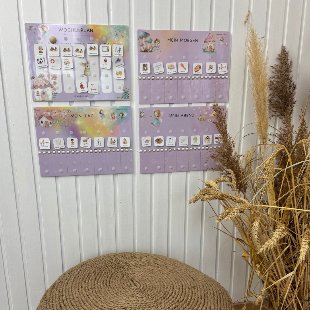 Bitte beachte: Die Kärtchen werden in DIN A4 Bögen geliefert und dann herausgelöst. Planer sowie Kärtchen werden eigenständig mit dem mit gelieferten Klett bestückt und die Routineplaner werden eigenständig eingeschnitten.