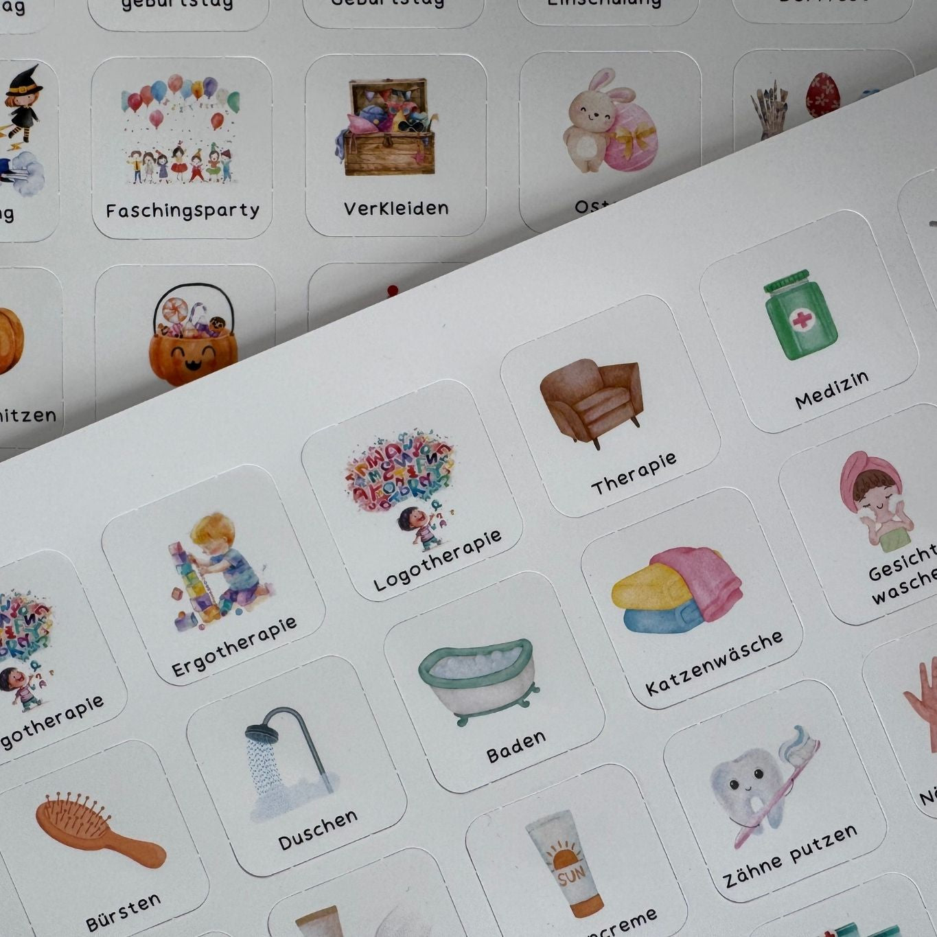 Die Motive sind liebevoll und klar gestaltet, sodass sie leicht zu verstehen sind – auch für kleine Kinder. - Klettpunkte inklusive – zum flexiblen Anbringen und Hochklappen nach Erledigung. So entsteht jeden Tag ein kleines Erfolgserlebnis: „Das hab ich geschafft!“